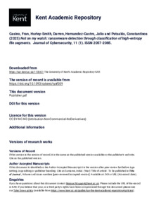 Casino, Fran, Hurley-Smith, Darren, Hernandez-Castro, Julio, Patsakis, Constantinos (2025) Not on my watch: ransomware detection through classification of high-entropy file segments. Journal of Cybersecurity, 11 (1). Article Number tyaf009. ISSN 2057-2085. (doi:10.1093/cybsec/tyaf009) (KAR id:110567)