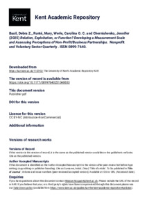 Basil, Debra Z., Runté, Mary, Werle, Carolina O. C., Chernishenko, Jennifer (2025) Relation, Exploitation, or Function? Developing a Measurement Scale and Assessing Perceptions of Non-Profit/Business Partnerships. Nonprofit and Voluntary Sector Quarterly, . Article Number 0899764025. ISSN 0899-7640. E-ISSN 1552-7395. (doi:10.1177/08997640251348653) (KAR id:110743)