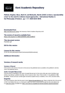 Pethick, Stephen, Wass, Mark N., Michaelis, Martin (2025) Is there a reproducibility crisis? on the need for evidence-based approaches. International Studies in the Philosophy of Science, . pp. 1-17. ISSN 0269-8595. E-ISSN 1469-9281. (doi:10.1080/02698595.2025.2538937) (KAR id:110789)