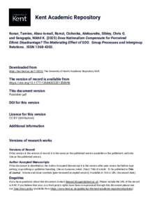 Konur, Tamino, Abou-Ismail, Ramzi, Cichocka, Aleksandra, Sibley, Chris G., Sengupta, Nikhil K. (2025) Does Nationalism Compensate for Perceived Ethnic Disadvantage? The Moderating Effect of SDO. Group Processes and Intergroup Relations, . ISSN 1368-4302. (doi:10.1177/13684302251358696) (KAR id:110925)