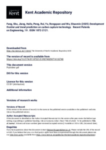 Fang, Shu, Jiang, Huilu, Peng, Rui, Yu, Rongquan, Wu, Shaomin (2025) Development frontier and trend prediction on carbon capture technology. Recent Patents on Engineering, 19 . Article Number e18722121392740. ISSN 1872-2121. E-ISSN 2212-4047. (doi:10.2174/0118722121392740250716132740) (KAR id:110940)