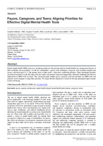 Huberty, Jennifer, Yourell, Jacqlyn, Baez, Lara, Salhi, Louisa (2025) Payors, Caregivers, and Teens: Aligning Priorities for Effective Digital Mental Health Tools. Journal of Medical Internet Research, 27 . Article Number e72587. ISSN 1438-8871. (doi:10.2196/72587) (KAR id:111067)