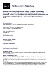 Blackburn, Sarah Amy, Sullivan, William, Freeman, Laura May, Howland, Kevin, Karamalegos, Antonis A., Dalloway, Michael, Philo, Mark, Tullet, Jennifer M.A., Ezcurra, Marina (2025) Upcycling of waste cherries produces an anthocyanin-rich powder that protects against amyloid-β toxicity in C. elegans. Antioxidants, 14 (8). Article Number 995. E-ISSN 2076-3921. (doi:10.3390/antiox14080995) (KAR id:111121)
