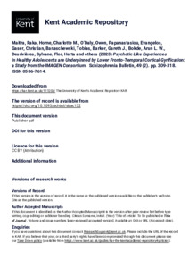 Maitra, Raka, Horne, Charlotte M., O’Daly, Owen, Papanastasiou, Evangelos, Gaser, Christian, Banaschewski, Tobias, Barker, Gareth J., Bokde, Arun L. W., Desrivières, Sylvane, Flor, Herta, and others. (2023) Psychotic Like Experiences in Healthy Adolescents are Underpinned by Lower Fronto-Temporal Cortical Gyrification: a Study from the IMAGEN Consortium. Schizophrenia Bulletin, 49 (2). pp. 309-318. ISSN 0586-7614. (doi:10.1093/schbul/sbac132) (KAR id:111203)