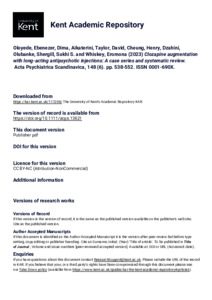 Oloyede, Ebenezer, Dima, Aikaterini, Taylor, David, Cheung, Henry, Dzahini, Olubanke, Shergill, Sukhi S., Whiskey, Eromona (2023) Clozapine augmentation with long‐acting antipsychotic injections: A case series and systematic review. Acta Psychiatrica Scandinavica, 148 (6). pp. 538-552. ISSN 0001-690X. (doi:10.1111/acps.13621) (KAR id:111206)