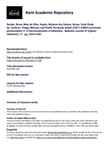 Santos, Bruno Maia da Silva, Dupim, Mariana dos Santos, Souza, Cauê Paula de, Cardozo, Thiago Messias, Finelli, Fernanda Gadini (2021) DABCO-promoted photocatalytic C–H functionalization of aldehydes. Beilstein Journal of Organic Chemistry, 17 . pp. 2959-2967. E-ISSN 1860-5397. (doi:10.3762/bjoc.17.205) (KAR id:111330)