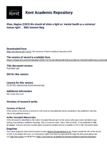 Khan, Nagina (2023) We should all shine a light on ‘mental health as a universal human right’. . BMJ internet blog. (KAR id:111378)