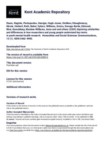 Duara, Raginie, Pavlopoulou, Georgia, Hugh-Jones, Siobhan, Shaughnessy, Nicola, Herbert, Ruth, Baker, Sylvan, Williams, Emma, Sonuga-Barke, Edmund, Bhui, Kamaldeep, Mankee-Williams, Anna, and others. (2025) Exploring similarities and differences in how researchers and young people understand key terms in youth mental-health research. Humanities and Social Sciences Communications, 12 (1). Article Number 1521. ISSN 2662-9992. (doi:10.1057/s41599-025-05809-5) (KAR id:111445)
