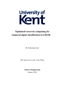 Luan, Tianxiang (2025) Optimised reservoir computing for temporal signal classification in LiDAR. Master of Science by Research (MScRes) thesis, University of Kent,. (doi:10.22024/UniKent/01.02.111558) (KAR id:111558)