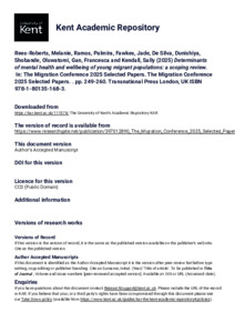 Rees-Roberts, Melanie, Ramos, Palmira, Fawkes, Jade, De Silva, Dunishiya, Shobande, Oluwatomi, Gan, Francesca, Kendall, Sally (2025) Determinants of mental health and wellbeing of young migrant populations: a scoping review. In: The Migration Conference 2025 Selected Papers. The Migration Conference 2025 Selected Papers. . pp. 249-260. Transnational Press London, UK ISBN 978-1-80135-168-3. (KAR id:111578)