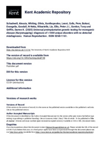 Schadwell, Alessia, Whiting, Olivia, Xanthopoulou, Leoni, Colls, Pere, Bakosi, Evangelia, Goodall, N-Neka, Ribustello, Lia, Ellis, Peter J.I., Gordon, Tony, Griffin, Darren K. and others. (2025) Universal preimplantation genetic testing for monogenic disease (Karyomapping): diagnosis of >1000 unique disorders with no detected misdiagnoses. Human Reproduction, . Article Number deaf198. ISSN 0268-1161. E-ISSN 1460-2350. (doi:10.1093/humrep/deaf198) (KAR id:111774)