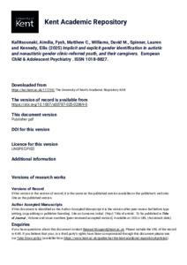 Kallitsounaki, Aimilia, Fysh, Matthew C., Williams, David M., Spinner, Lauren, Kennedy, Eilis (2025) Implicit and explicit gender identification in autistic and nonautistic gender clinic-referred youth, and their caregivers. European Child & Adolescent Psychiatry, . ISSN 1018-8827. (doi:10.1007/s00787-025-02869-5) (KAR id:111795)