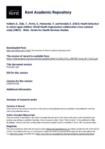 Hulbert, S. and Eida, T. and Ferris, E. and Hrytsenko, V. and Kendall, S. (2023) Health behaviour in school-aged children: World Health Organisation collaborative cross-national study (HBSC). Other. Centre for Health Services Studies (KAR id:111954)