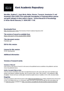 Mavrides, Daphne E., Liapi, Maria, Malas, Stavros, Tsaousis, Anastasios D., Gentekaki, Eleni (2025) First nationwide investigation of Cryptosporidium species and gp60 subtypes in dairy cattle in Cyprus. Current Research in Parasitology & Vector-Borne Diseases, 8 . Article Number 100326. ISSN 2667-114X. (doi:10.1016/j.crpvbd.2025.100326) (KAR id:111959)