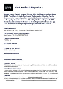 Bradley, Steven, English, Rosanne, Fincher, Sally, Hull, Duncan, Zarb, Mark (2025) From Marco to Maria: Ten Years of the Computing Education Practice Conference. In: Koli Calling '25: Proceedings of the 25th Koli Calling International Conference on Computing Education Research. Association for Computing Machinery ISBN 979-8-4007-1599-0. (doi:10.1145/3769994.3770003) (KAR id:112020)
