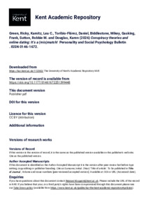 Green, Ricky, Kamitz, Lea C., Toribio-Flórez, Daniel, Biddlestone, Mikey, Gasking, Frank, Sutton, Robbie M., Douglas, Karen (2026) Conspiracy theories and online dating: It’s a (mis)match! Personality and Social Psychology Bulletin, . ISSN 0146-1672. (doi:10.1177/01461672251399448) (KAR id:112063)