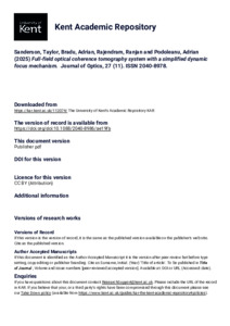 Sanderson, Taylor, Bradu, Adrian, Rajendram, Ranjan, Podoleanu, Adrian (2025) Full-field optical coherence tomography system with a simplified dynamic focus mechanism. Journal of Optics, 27 (11). Article Number 115301. ISSN 2040-8978. E-ISSN 2040-8986. (doi:10.1088/2040-8986/ae19fb) (KAR id:112074)