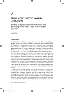 Atkin, Lars (2025) From ‘folklore’ to world literature : Reading indigenous responses to Place and belonging in the Bleek–Lloyd Archive of San Kukummi. In: Lee, Klaudia Hiu Yen and Sorensen, Eli Park, eds. World Literature: Approaches, Practices, and Pedagogies. Routledge, London and New York, pp. 122-135. ISBN 978-1-032-42590-0. (KAR id:112141)