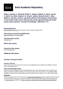 Gillson, Jonathan P., Blackwell, Robert E., Gregory, Stephen D., Marsh, Jessica E., Bašić, Tea, Elliott, Sophie A. M., King, R. Andrew, Maxwell, David L., Riley, William D., Stevens, Jamie R., and others. (2025) Do the biological characteristics of trout (Salmo trutta) smolts influence their spring migration timing and maiden marine sojourn duration? Journal of Fish Biology, . ISSN 0022-1112. E-ISSN 1095-8649. (doi:10.1111/jfb.16040) (KAR id:112214)