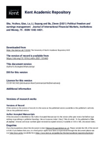 Sha, Yezhou, Qiao, Lu, Li, Suyang, Bu, Ziwen (2021) Political freedom and earnings management. Journal of International Financial Markets, Institutions and Money, 75 . Article Number 101443. ISSN 1042-4431. (doi:10.1016/j.intfin.2021.101443) (KAR id:112280)