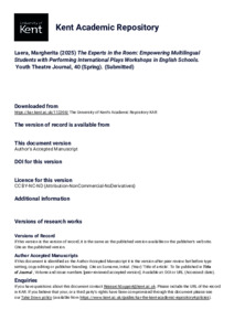 Laera, Margherita (2025) The Experts in the Room: Empowering Multilingual Students with Performing International Plays Workshops in English Schools. Youth Theatre Journal, 40 (Spring). (Submitted) (KAR id:112398)
