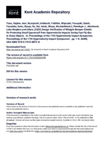 Yano, Hajime, Arai, Kazuyoshi, Ishibashi, Yukihiro, Miyazaki, Yasuyuki, Satoh, Yasutaka, Sano, Ryoya, Ito, Kai, Iwata, Shoya, Wozniakiewicz, Penelope J., Alesbrook, Luke Stephen, and others. (2025) Design Verification of Whipple Bumper Shields for Protecting Small Spacecraft from Hypervelocity Impacts During Fast Fly-Bys to Dusty Objects. In: Proceedings of the 17th Hypervelocity Impact Symposium. Proceedings of the 17th Hypervelocity Impact Symposium . pp. 1-8. ASME, USA ISBN 978-0-7918-8872-8. (doi:10.1115/HVIS2024-098) (KAR id:112607)