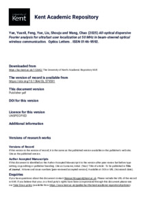 Yue, Yuanli, Feng, Yue, Liu, Shouju, Wang, Chao (2025) All-optical dispersive Fourier analysis for ultrafast user localization at 50 MHz in beam-steered optical wireless communication. Optics Letters, . ISSN 0146-9592. (KAR id:112642)