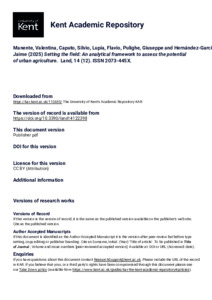 Manente, Valentina, Caputo, Silvio, Lupia, Flavio, Pulighe, Giuseppe, Hernández-Garcia, Jaime (2025) Setting the field: An analytical framework to assess the potential of urban agriculture. Land, 14 (12). Article Number 2398. ISSN 2073-445X. (doi:10.3390/land14122398) (KAR id:112655)