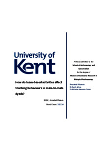 Pleavin, Annabel (2025) How do team-based activities affect touching behaviours in male-to-male dyads? Master of Research (MRes) thesis, University of Kent. (doi:10.22024/UniKent/01.02.112658) (KAR id:112658)