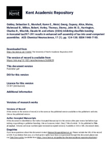 Oakley, Sebastian S., Marshall, Karen E., Meisl, Georg, Copsey, Alice, Maina, Mahmoud B., Milton, Robert, Vorley, Thomas, Storey, John M. D., Harrington, Charles R., Wischik, Claude M., and others. (2026) Inhibiting disulfide bonding in truncated tau297–391 results in enhanced self-assembly of tau into seed-competent assemblies. ACS Chemical Neuroscience, 17 (1). pp. 124-138. ISSN 1948-7193. (doi:10.1021/acschemneuro.5c00639) (KAR id:112659)