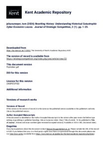 johansmeyer, tom (2026) Rewriting History: Understanding Historical Catastrophic Cyber Economic Losses. Journal of Strategic Competition, 2 (1). pp. 1-25. (KAR id:112692)