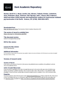 Stanton, David W. G., Manin, Aurelie, Evin, Allowen, Tabbada, Kristina, Linderholm, Anna, Drinkwater, Rosie, Thalmann, Olaf, Ng'ang'a, Said I., Amano, Noel, Anderson, Atholl, and others. (2026) Genomic and morphometric evidence for Austronesian-mediated pig translocation in the Pacific. Science, 391 (6780). Article Number eadv4963. ISSN 0036-8075. (doi:10.1126/science.adv4963) (KAR id:112724)