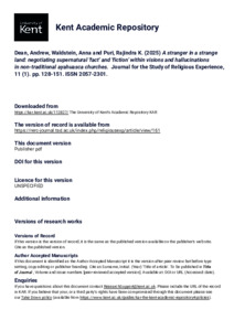 Dean, Andrew, Waldstein, Anna, Puri, Rajindra K. (2025) A stranger in a strange land: negotiating supernatural 'fact' and 'fiction' within visions and hallucinations in non-traditional ayahuasca churches. Journal for the Study of Religious Experience, 11 (1). pp. 128-151. ISSN 2057-2301. (KAR id:112827)