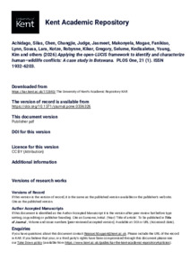 Achidago, Silas, Chen, Changjie, Judge, Jasmeet, Makonyela, Mogae, Fanikiso, Lynn, Sousa, Lara, Kotze, Robynne, Kiker, Gregory, Selume, Kedisaletse, Young, Kim, and others. (2026) Applying the open-LUCIS framework to identify and characterize human–wildlife conflicts: A case study in Botswana. PLOS One, 21 (1). Article Number e0336326. ISSN 1932-6203. (doi:10.1371/journal.pone.0336326) (KAR id:112843)