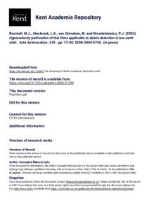 Burchell, M.J., Alesbrook, L.A., van Ginneken, M., Wozniakiewicz, P.J. (2026) Hypervelocity perforation of thin films applicable to debris detection in low earth orbit. Acta Astronautica, 243 . pp. 73-90. ISSN 0094-5765. E-ISSN 1879-2030. (In press) (doi:10.1016/j.actaastro.2026.01.050) (KAR id:112848)