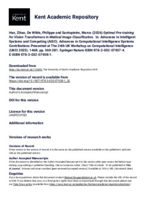 Han, Zihao, De Wilde, Philippe, Santopietro, Marco (2026) Optimal Pre-training for Vision Transformers in Medical Image Classification. In: Advances in Intelligent Systems and Computing (AISC). Advances in Computational Intelligence Systems Contributions Presented at The 24th UK Workshop on Computational Intelligence (UKCI 2025). 1468. pp. 369-381. Springer Nature ISBN 978-3-032-07937-4. E-ISBN 978-3-032-07938-1. (doi:10.1007/978-3-032-07938-1_32) (KAR id:112899)