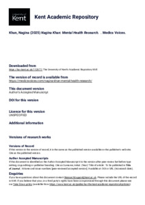 Khan, Nagina (2025) Nagina Khan: Mental Health Research. . Medics Voices. (KAR id:112977)