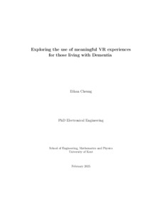 Cheung, Ethan (2026) Exploring the use of meaningful VR experiences for those living with dementia. Doctor of Philosophy (PhD) thesis, University of Kent. (KAR id:113009)