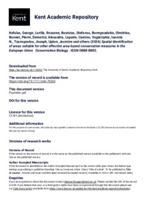 Kefalas, George, Lorilla, Roxanne, Boutsios, Stefanos, Bormpoudakis, Dimitrios, Bonnet, Pierre, Demertzi, Alexandra, Liquete, Camino, Vogiatzakis, Ioannis N., Tzanopoulos, Joseph, Upton, Jasmine, and others. (2026) Spatial identification of areas suitable for other effective area-based conservation measures in the European Union. Conservation Biology, . Article Number e70263. ISSN 0888-8892. E-ISSN 1523-1739. (doi:10.1111/cobi.70263) (KAR id:113058)