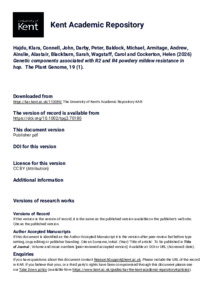 Hajdu, Klara, Connell, John, Darby, Peter, Baldock, Michael, Armitage, Andrew, Ainslie, Alastair, Blackburn, Sarah, Wagstaff, Carol, Cockerton, Helen (2026) Genetic components associated with R2 and R4 powdery mildew resistance in hop. The Plant Genome, 19 (1). Article Number e70180. E-ISSN 1940-3372. (doi:10.1002/tpg2.70180) (KAR id:113089)