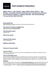 Widner, Florian J., Khan, Naziyat I., Deery, Evelyne, Warren, Martin J., Taga, Michiko E., Kräutler, Bernhard (2026) Repression of bacterial gene expression by antivitamin B12 binding to a cobalamin riboswitch. RSC Chemical Biology, 7 (3). pp. 498-504. ISSN 2633-0679. (doi:10.1039/d5cb00308c) (KAR id:113140)