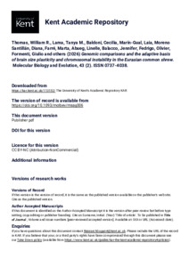 Thomas, William R., Lama, Tanya M., Baldoni, Cecilia, Marín-Gual, Laia, Moreno Santillán, Diana, Farré, Marta, Abueg, Linelle, Balacco, Jennifer, Fedrigo, Olivier, Formenti, Giulio, and others. (2026) Genomic comparisons and the adaptive basis of brain size plasticity and chromosomal instability in the Eurasian common shrew. Molecular Biology and Evolution, 43 (2). Article Number msag006. ISSN 0737-4038. E-ISSN 1537-1719. (doi:10.1093/molbev/msag006) (KAR id:113152)