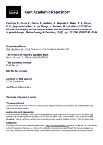 Fadrique, B., Costa, F., Cuesta, F., Arellano, G., Cayuela, L., Baker, T. R., Draper, F. C., Esquivel-Muelbert, A., ter Steege, H., Bauters, M., and others. (2026) Tree diversity is changing across tropical Andean and Amazonian forests in response to global change. Nature Ecology & Evolution, 10 (2). pp. 267-280. ISSN 2397-334X. (doi:10.1038/s41559-025-02956-5) (KAR id:113180)