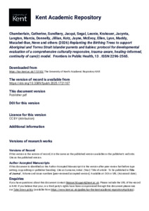 Chamberlain, Catherine, Sundbery, Jacqui, Segal, Leonie, Krakouer, Jacynta, Langton, Marcia, Donnelly, Jillian, Kotz, Jayne, McEvoy, Ellen, Lyon, Maddy, Mucabel-Bue, Neve, and others. (2026) Replanting the Birthing Trees to support Aboriginal and Torres Strait Islander parents and babies: protocol for developmental evaluation of a comprehensive culturally responsive, trauma-aware, healing-informed, continuity of care(r) model. Frontiers in Public Health, 13 . Article Number 1721107. ISSN 2296-2565. (doi:10.3389/fpubh.2025.1721107) (KAR id:113183)