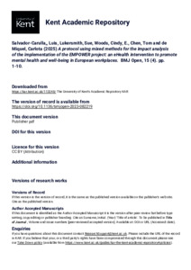 Salvador-Carulla,, Luis, Lukersmith, Sue, Woods, Cindy, E., Chen, Tom, de Miquel, Carlota (2025) A protocol using mixed methods for the impact analysis of the implementation of the EMPOWER project: an eHealth intervention to promote mental health and well-being in European workplaces. BMJ Open, 15 (4). pp. 1-10. E-ISSN 2044-6055. (KAR id:113248)