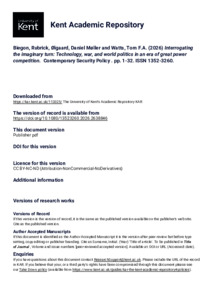 Biegon, Rubrick, Ølgaard, Daniel Møller, Watts, Tom F.A. (2026) Interrogating the imaginary turn: Technology, war, and world politics in an era of great power competition. Contemporary Security Policy, . pp. 1-32. ISSN 1352-3260. E-ISSN 1743-8764. (doi:10.1080/13523260.2026.2638846) (KAR id:113325)