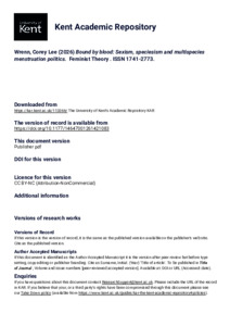 Wrenn, Corey Lee (2026) Bound by blood: Sexism, speciesism and multispecies menstruation politics. Feminist Theory, . Article Number 14647001261421083. ISSN 1741-2773. (doi:10.1177/14647001261421083) (KAR id:113366)