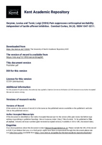 Gwynne, Louisa, Tamè, Luigi (2026) Pain suppresses corticospinal excitability, independent of tactile afferent inhibition. Cerebral Cortex, 36 (4). Article Number bhag041. ISSN 1047-3211. (doi:10.1093/cercor/bhag041) (KAR id:113384)