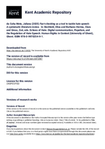 da Cuha Mota, Juliana (2025) Fact-checking as a tool to tackle hate speech: A systematic literature review. In: Bechtold, Eliza and Burbano-Herrea, Clara and Gross, Zoë, eds. Echoes of Hate. Digital communication, Populism, and the Regulation of Hate Speech. Human Rights in Context (University of Ghent), Ghent. ISBN 978-0-9970254-9-1. (doi:10.2139/ssrn.6072547) (KAR id:113403)