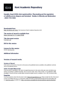 Hanoğlu, Hayal (2026) Alevi spatial politics: Placemaking and the negotiation of visibility across diaspora and homeland. Studies in Ethnicity and Nationalism, . ISSN 1754-9469. (doi:10.1111/sena.70034) (KAR id:113537)